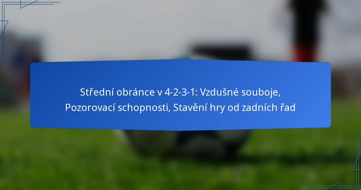 Střední obránce ve formaci 4-2-3-1 hraje klíčovou roli jak v defenzivní stabilitě, tak při zahajování útočných akcí. Mezi hlavní odpovědnosti patří excelence ve vzdušných soubojích,